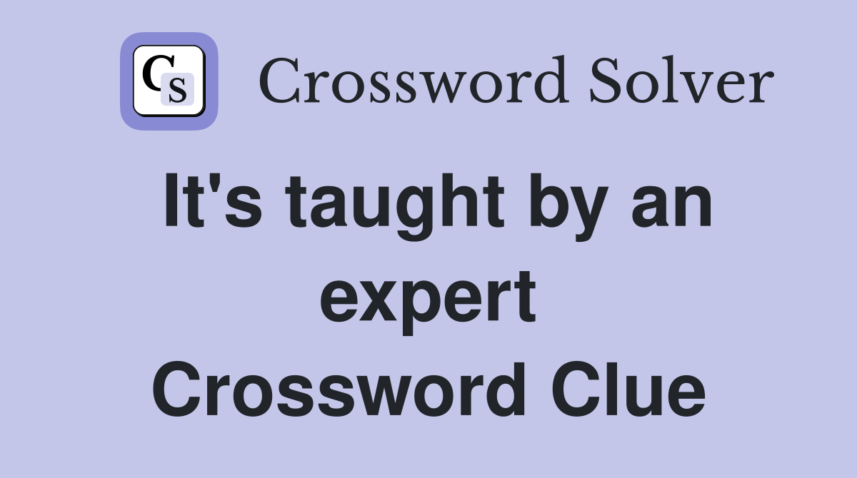 It #39 s taught by an expert Crossword Clue Answers Crossword Solver