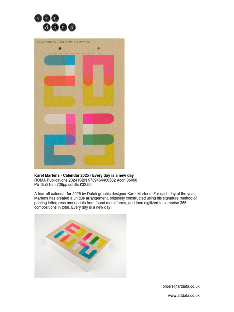 Karel Martens: Every Day Is a New Day Calendar 2024 Graphic design