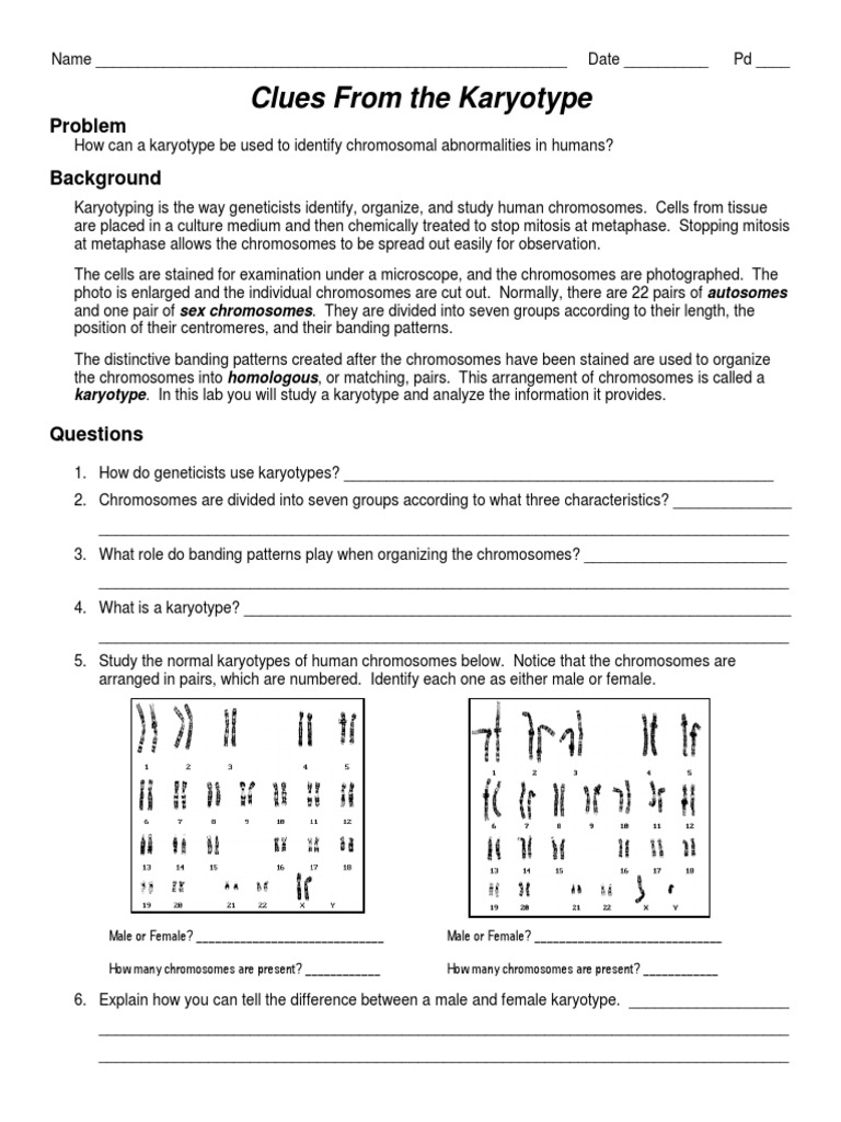 Biology Karyotype Worksheet Answers Printable And Enjoyable Learning