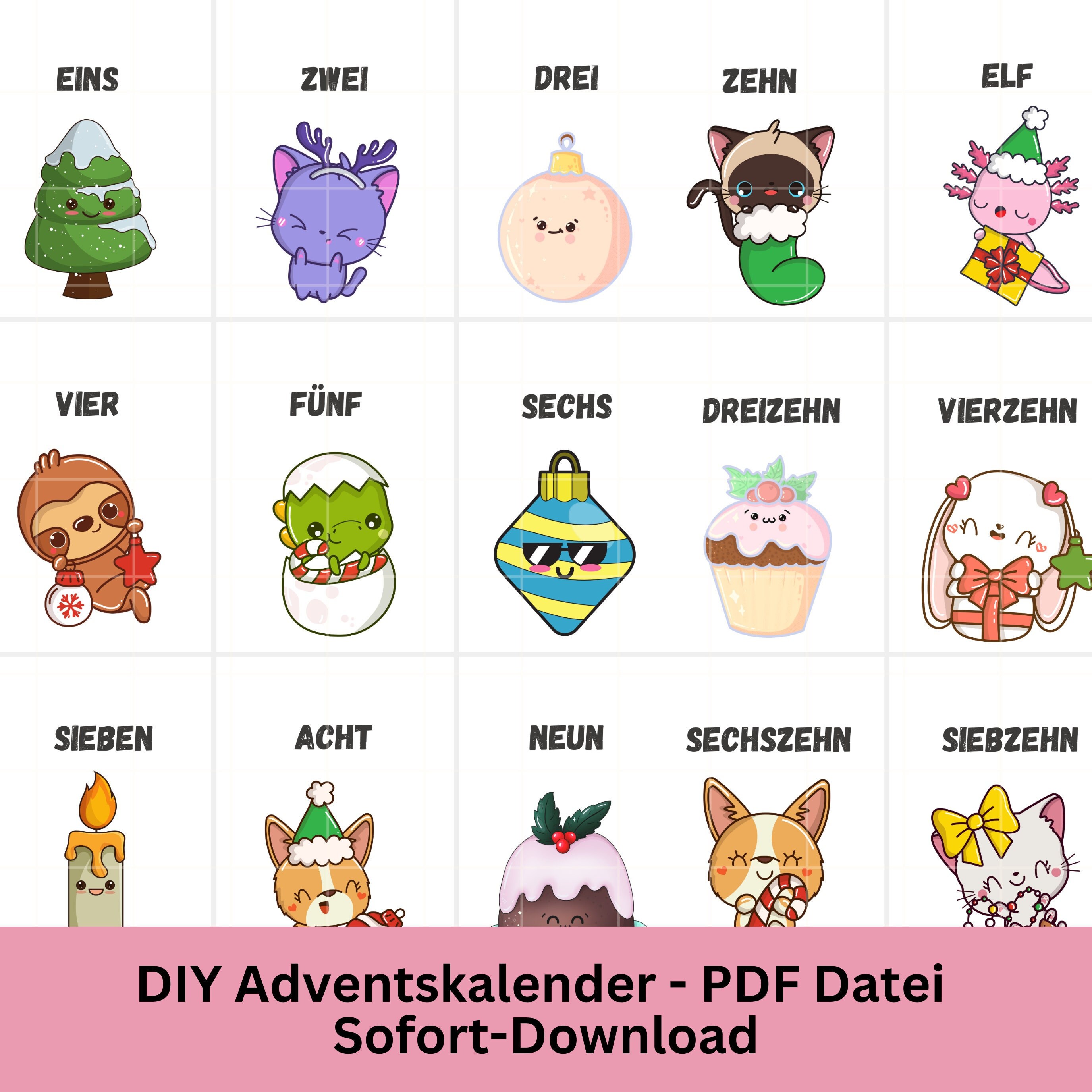 Kawaii Advent Calendar to Print Out DIY Digital File Instant Download
