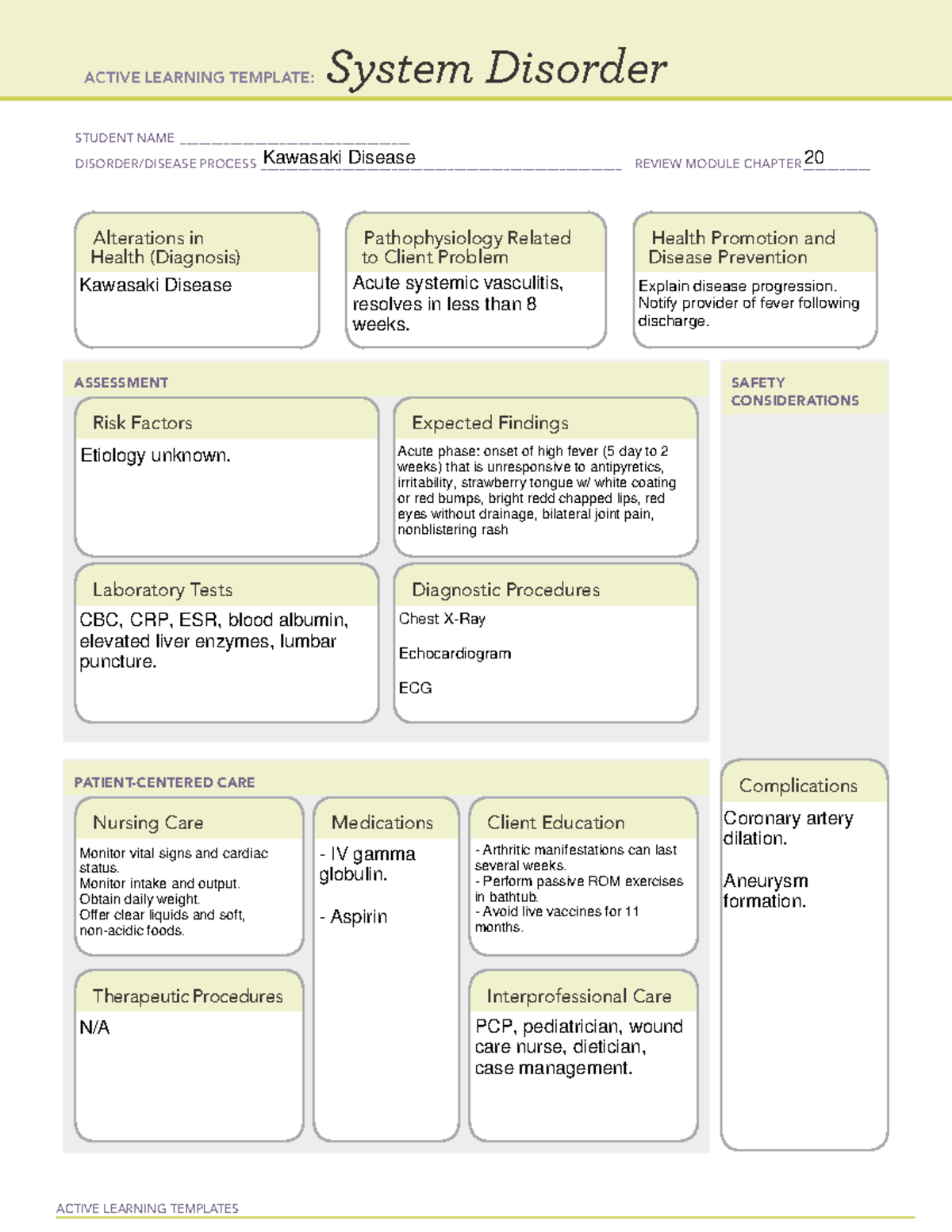 Kawasaki Disease ATI Template jpg ACTIVE LEARNING TEMPLATE: System