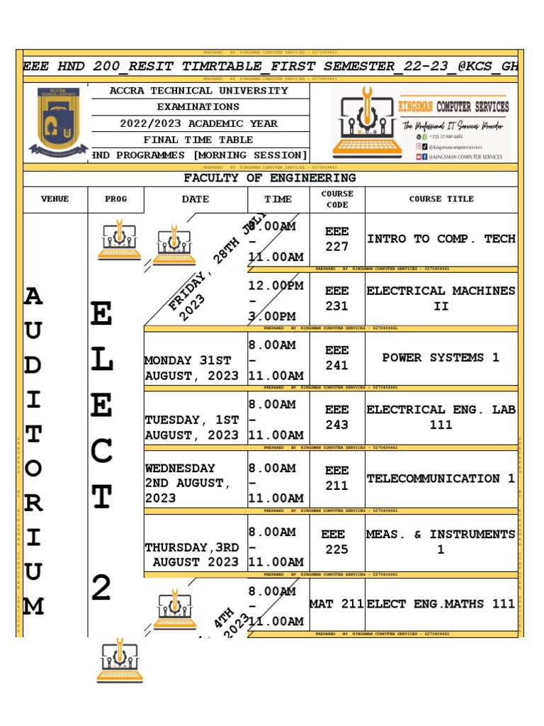 Eee HND 200 Resit Timrtable First Semester 22 23 kcs GH PDF