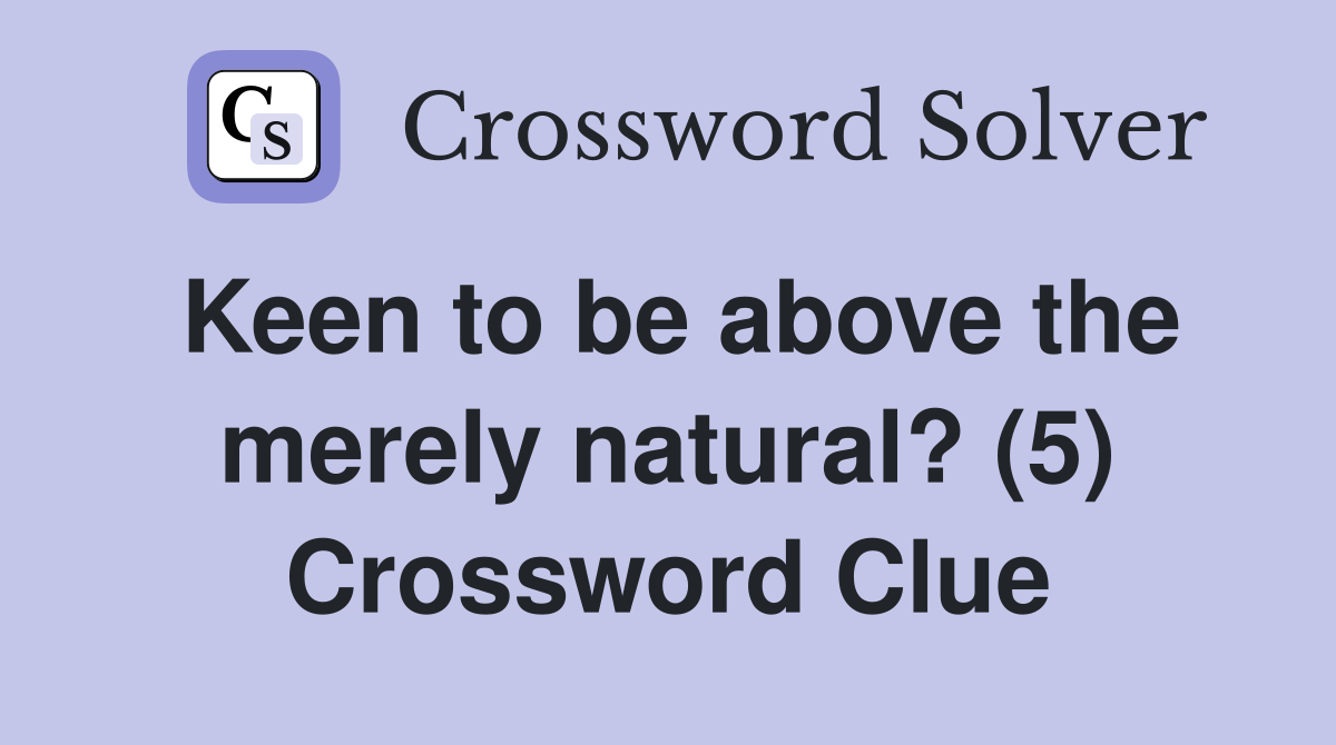 Keen to be above the merely natural? (5) Crossword Clue Answers