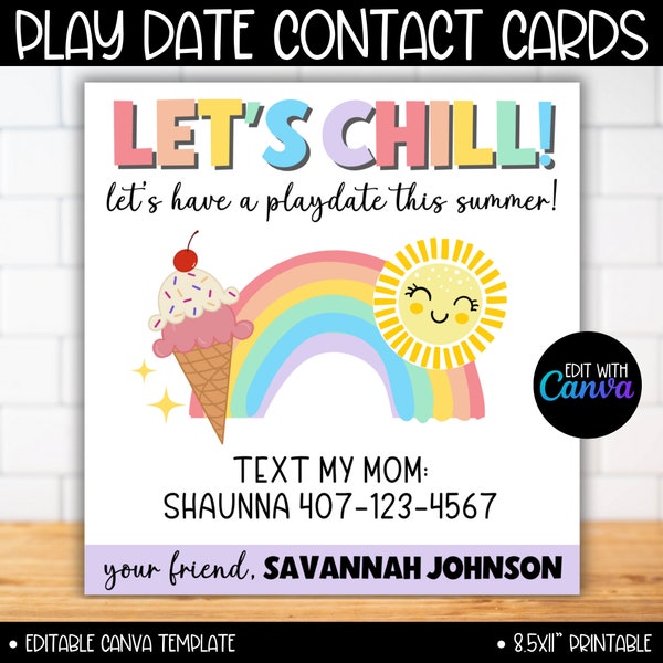 Printable Summer Contact Cards Editable Kids Play Date Cards Keep in