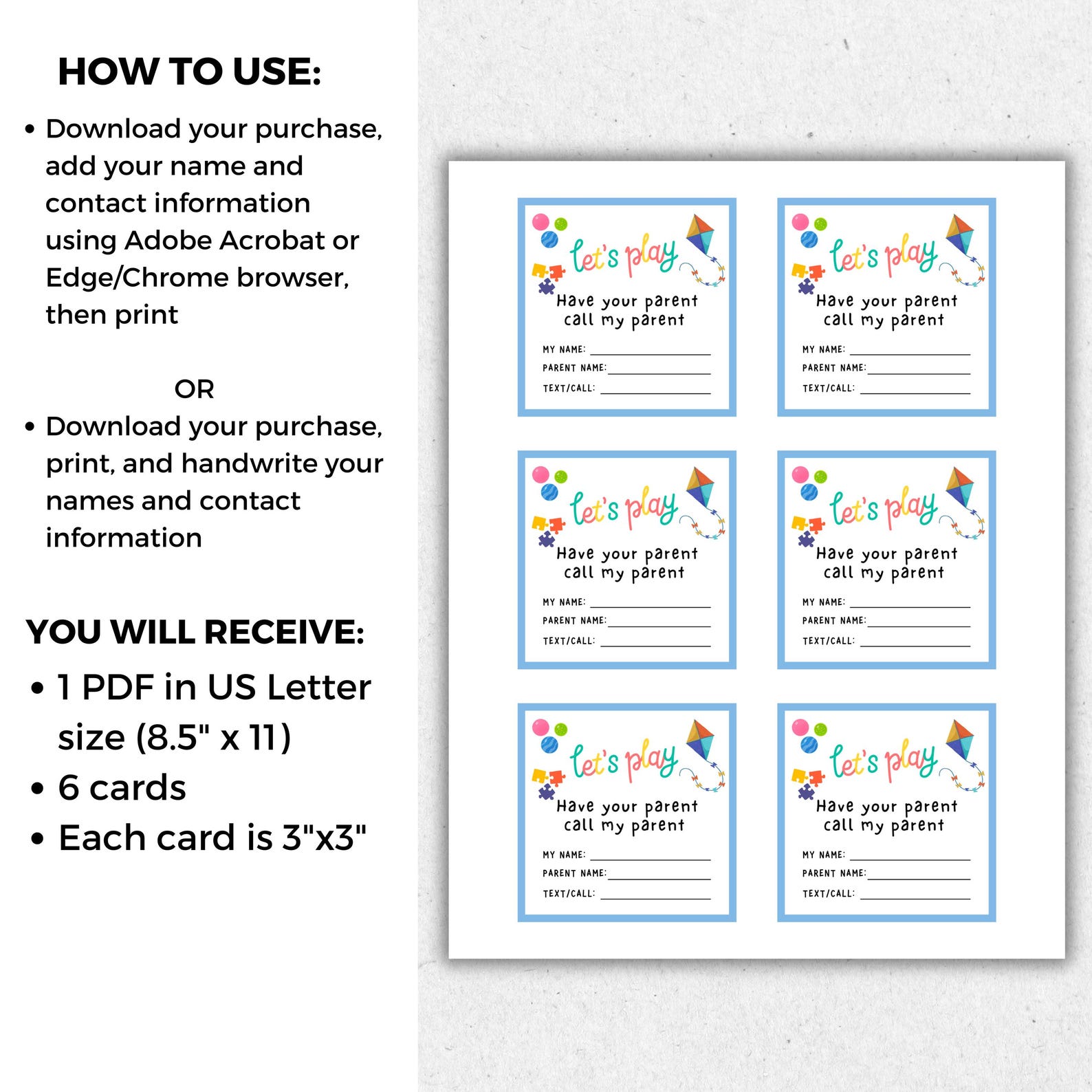 Kids Contact Cards Kids Playdate Cards Kids Keep in Touch for Kids