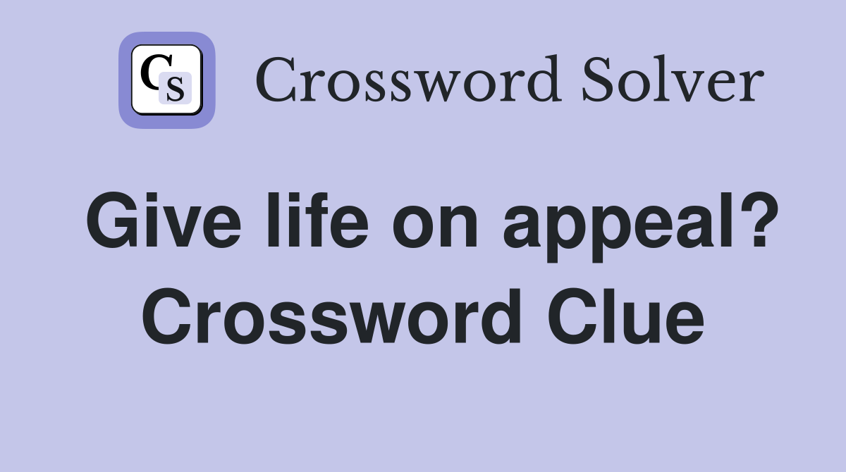 Give life on appeal? Crossword Clue Answers Crossword Solver