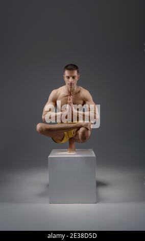 Male yoga keeps balanc in a difficult pose Stock Photo Alamy