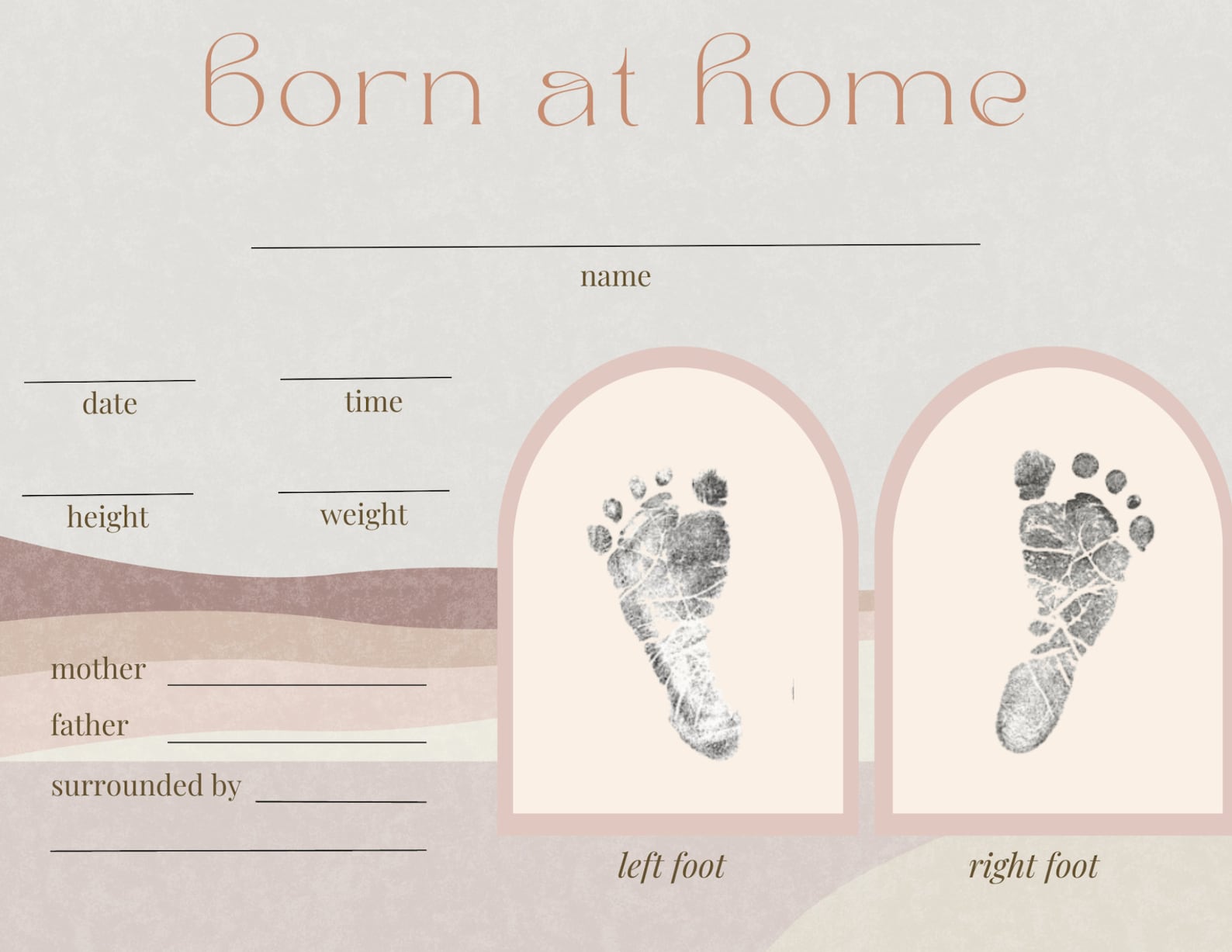 Home Birth Certificate Born at Home Midwife Client Handout Baby