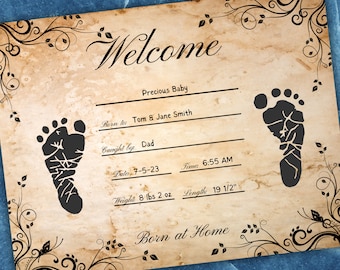 Keepsake Birth 8 5 x 11 inch Certificate Baby Feet Blank with black