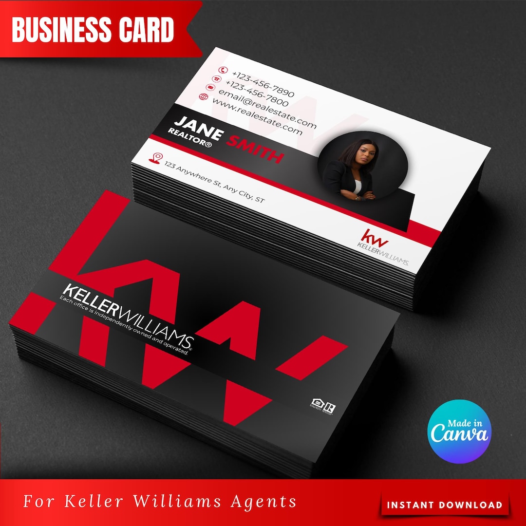 Keller Williams Business Card Template: Editable Realtor Design (canva