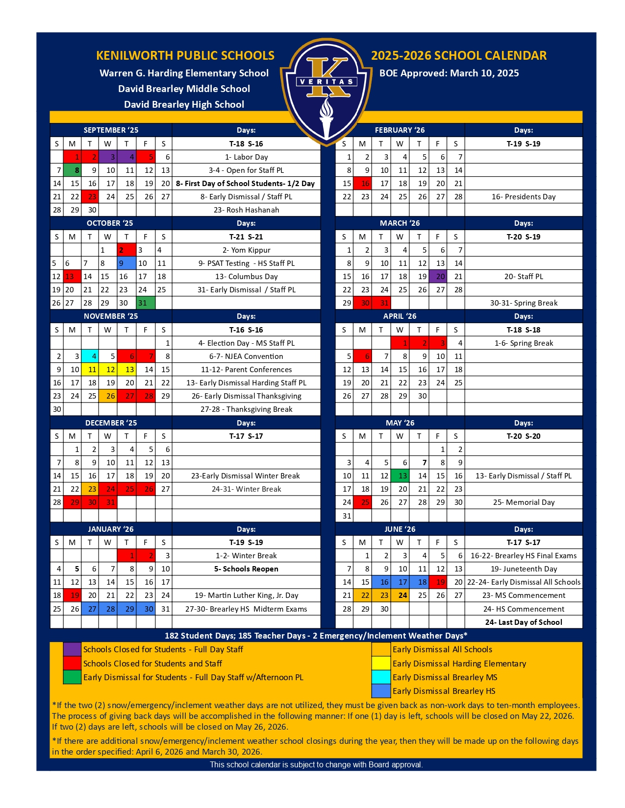 Kenilworth public school calendar 25 26 Revised PDF EduCounty
