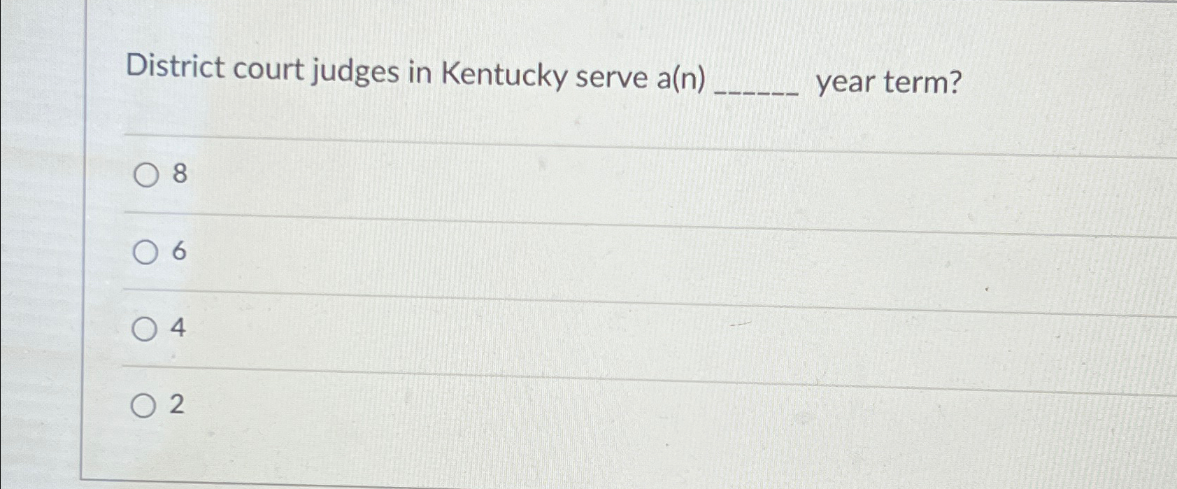 Solved District court judges in Kentucky serve a(n) year Chegg com