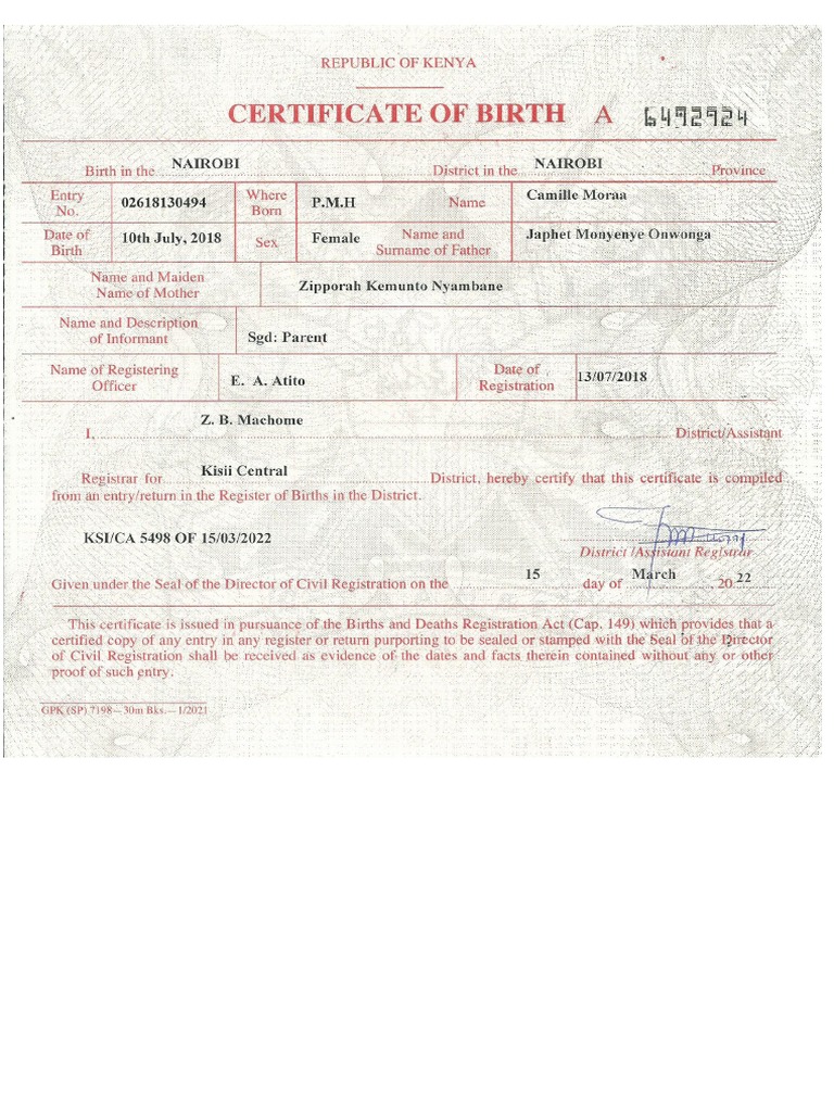 Kenya Birth Certificate prntbl concejomunicipaldechinu gov co