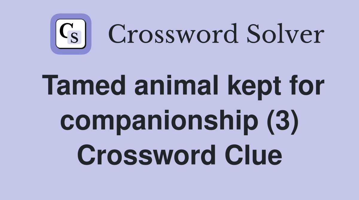 Tamed animal kept for companionship (3) Crossword Clue Answers