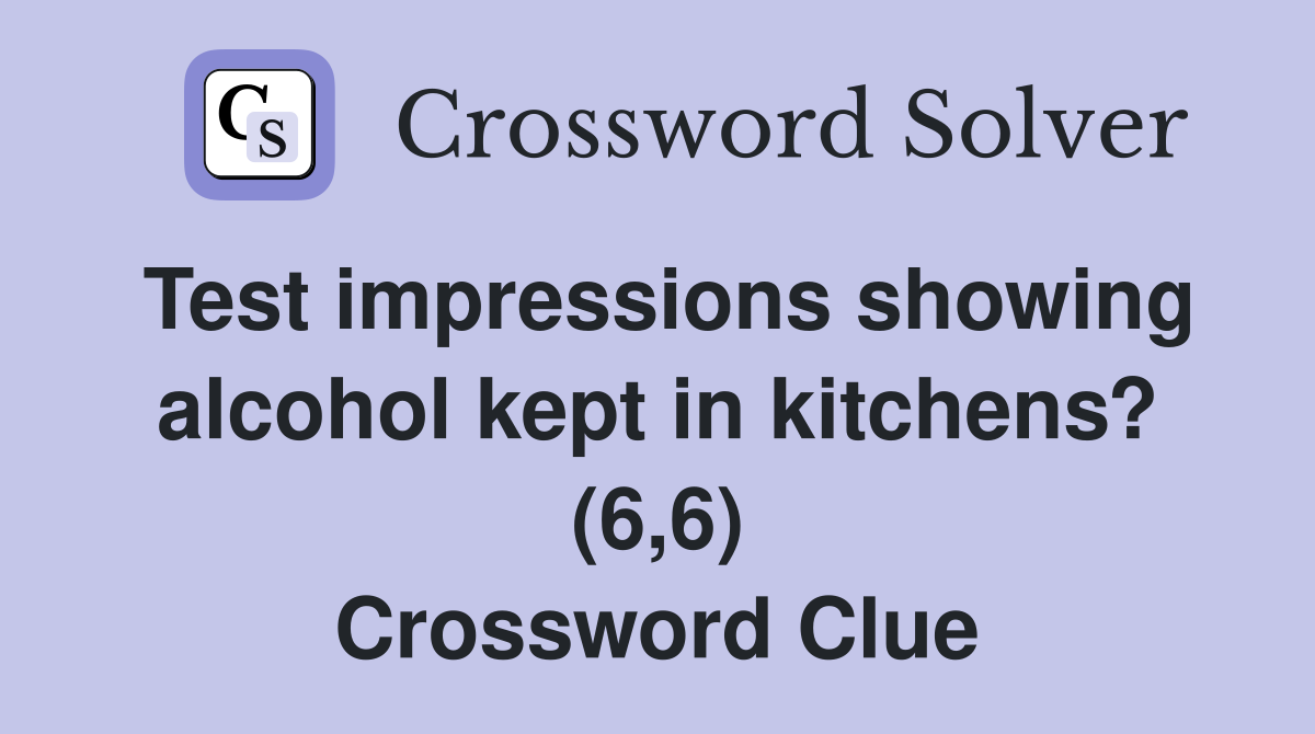 Test impressions showing alcohol kept in kitchens? (6 6) Crossword