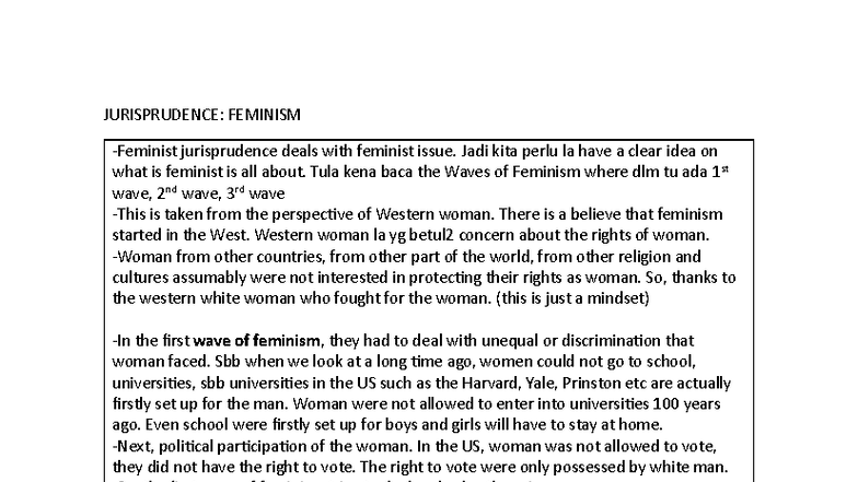 JURISPRUDENCE: FEMINISM AND THE WAVES OF FEMINIST THOUGHT Studocu