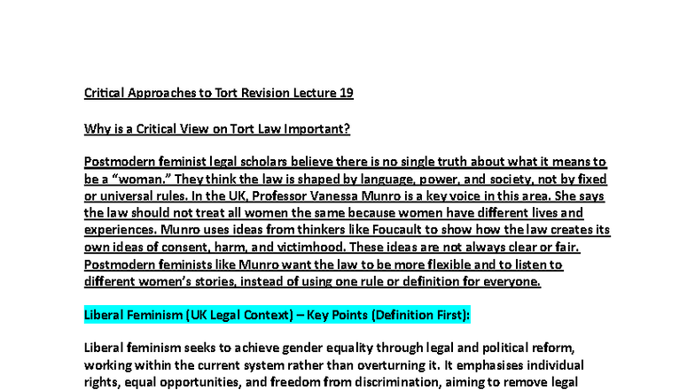 Critical Approaches to Tort Law: Lecture 19 Insights on Feminist