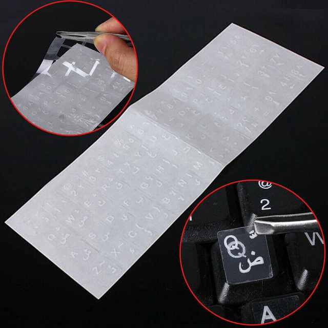 WHITE LETTER ARABIC Layout Transparent Keyboard Sticker 5T4E x No I2A9