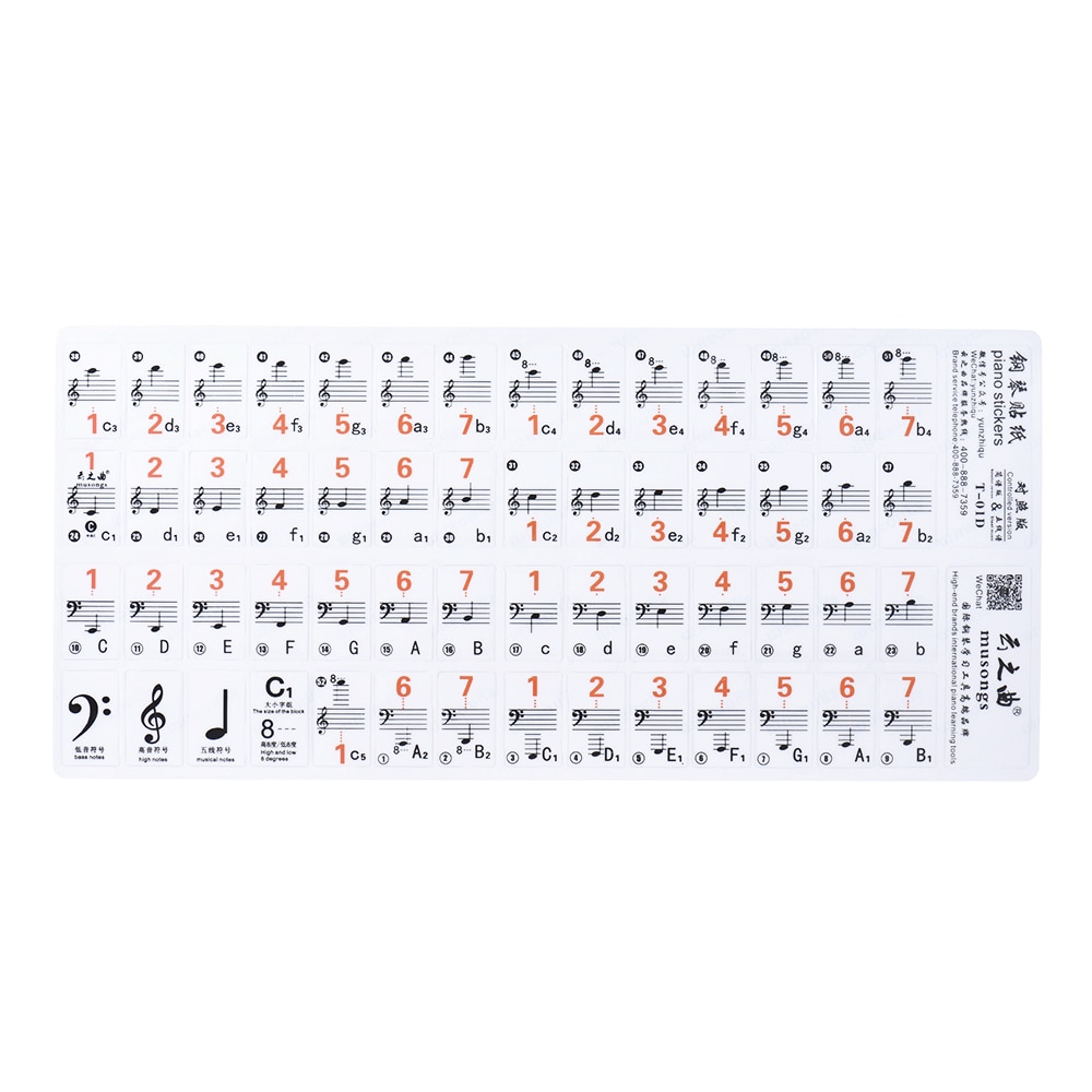 61 key Piano Note Chart Non sticking Removable Pia Vicedeal