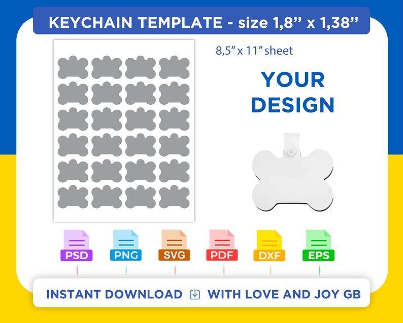 PRINTABLE Keychain Tag Template Downloadable PDF Keyring Etsy