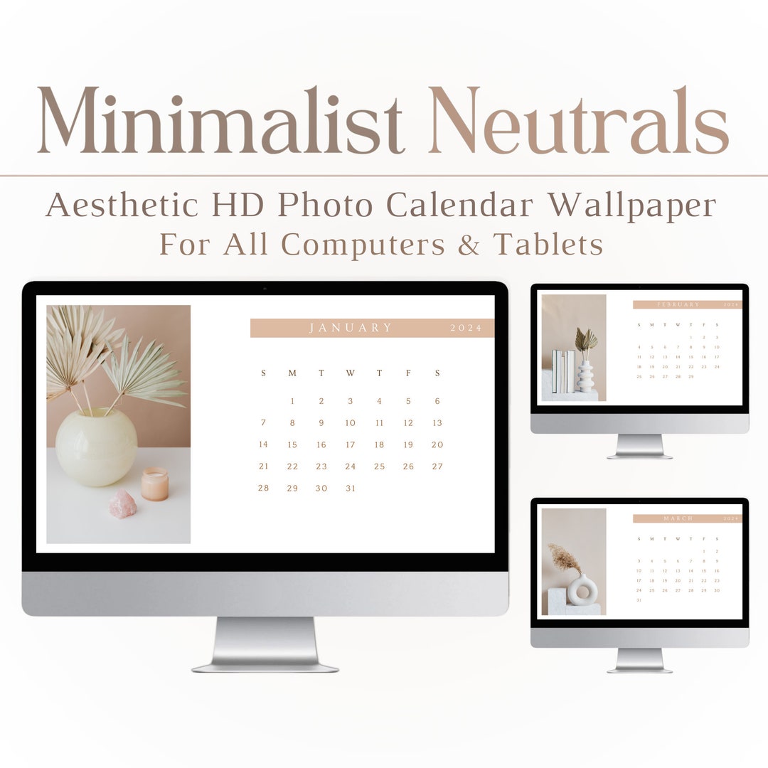 2024 Desktop Wallpaper Calendar Minimalist Boho Neutrals Beige
