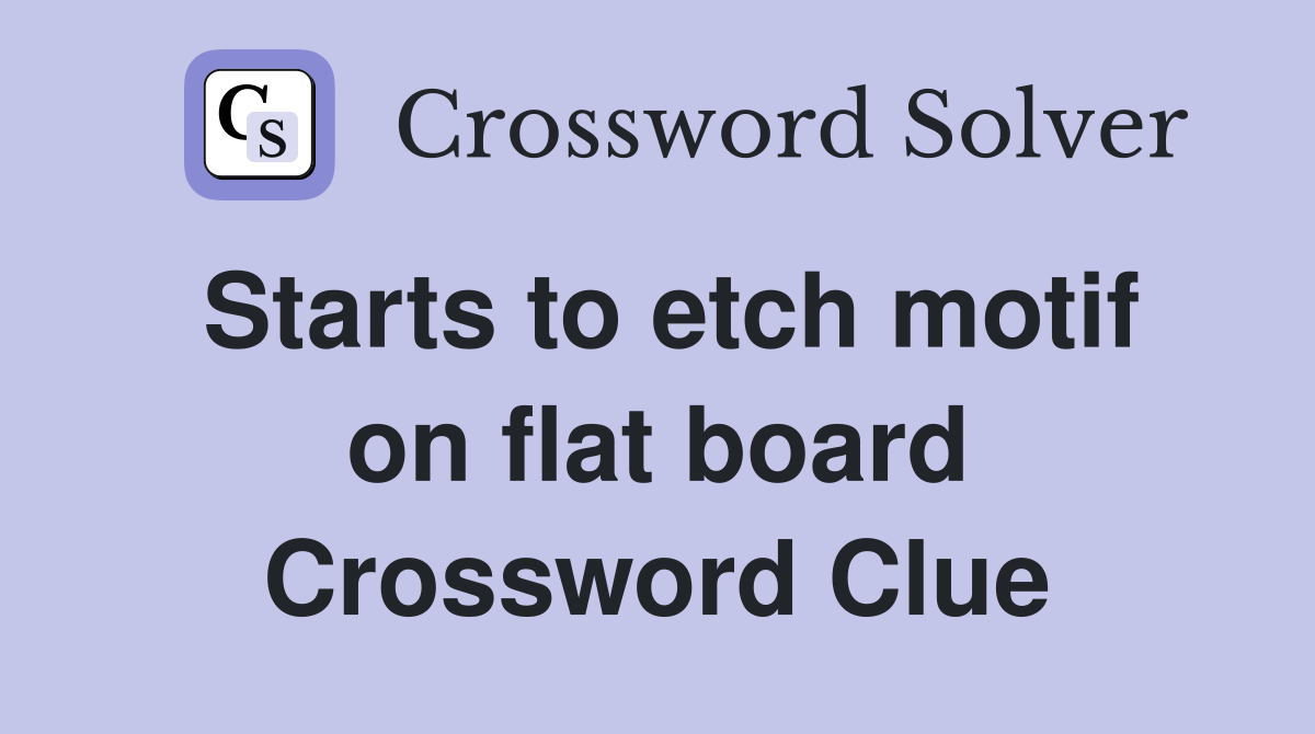 Starts to etch motif on flat board Crossword Clue Answers Crossword