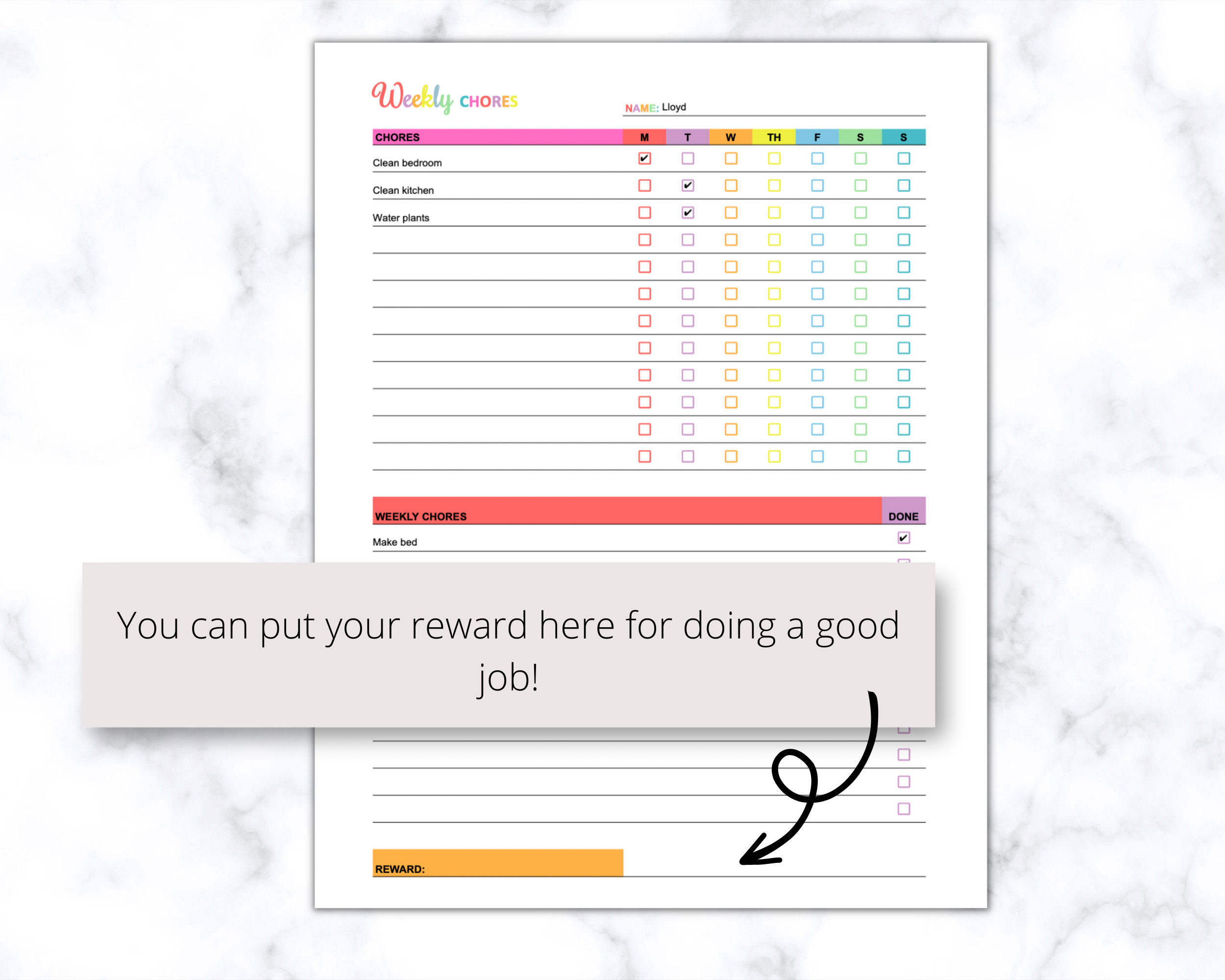Printable Chore Chart For Kids Instant Download PDF A4 and US