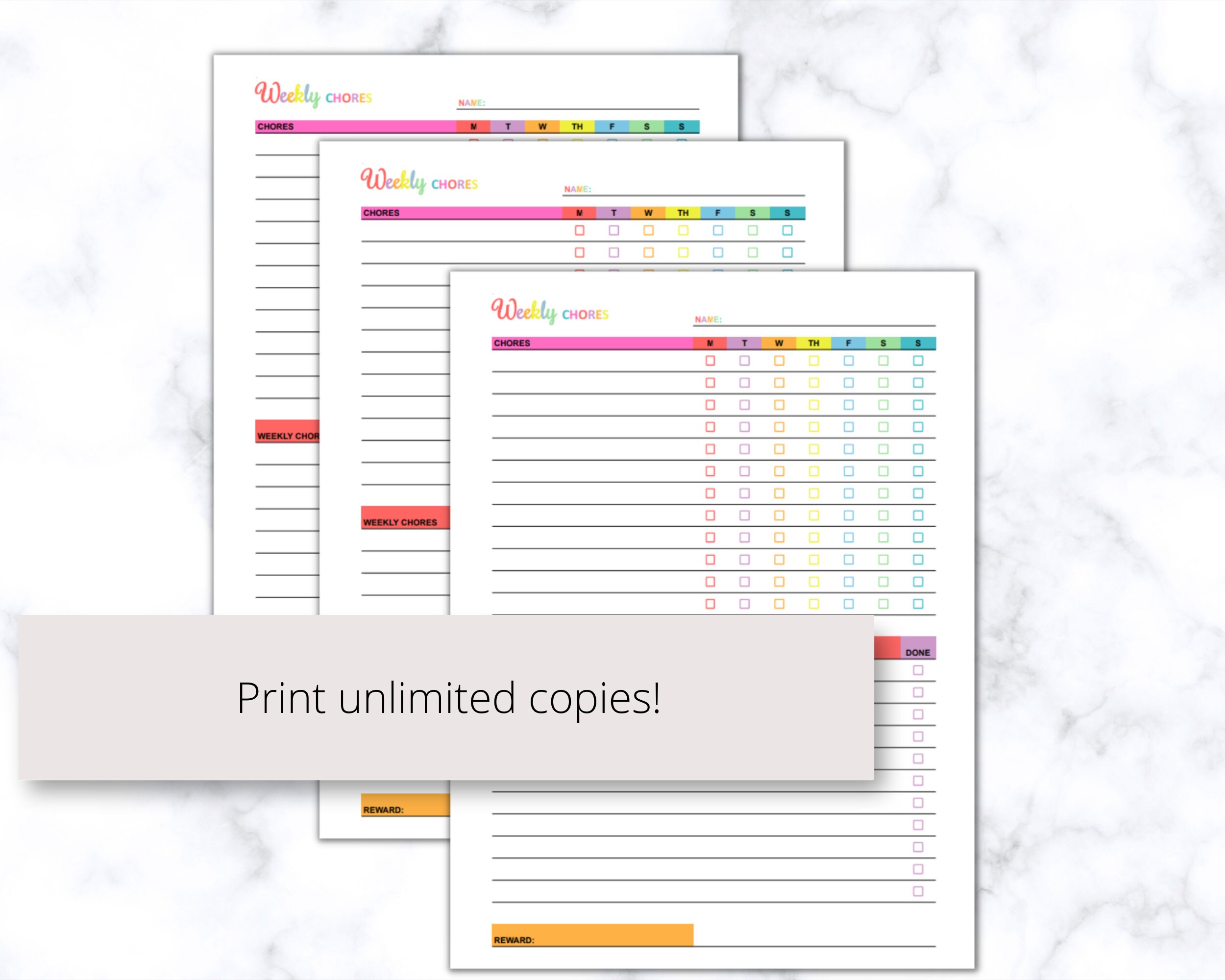 Multi color Kids Chore Chart Printable PDF Kids Daily Tasks Kids