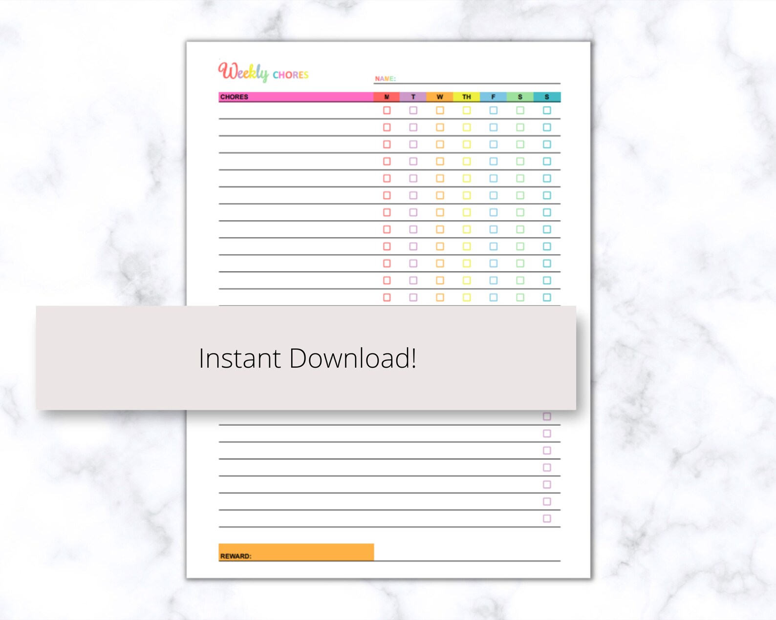 Printable Chore Chart for Kids: Colorful Weekly Tasks (instant Digital