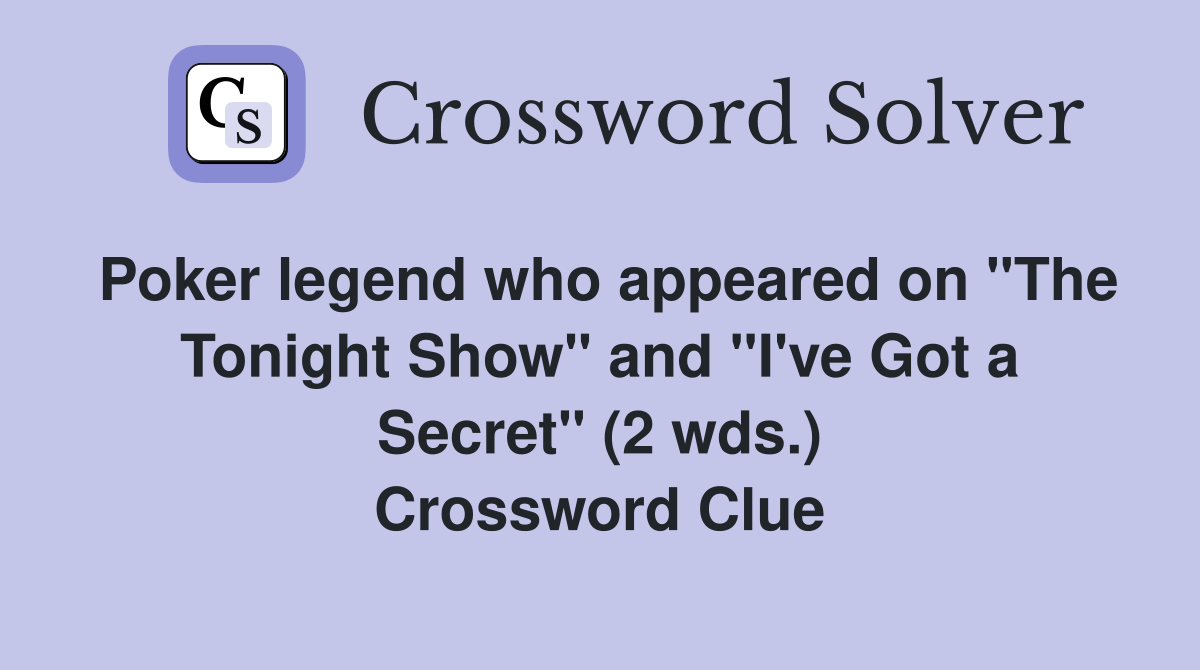 Poker legend who appeared on quot The Tonight Show quot and quot I #39 ve Got a Secret