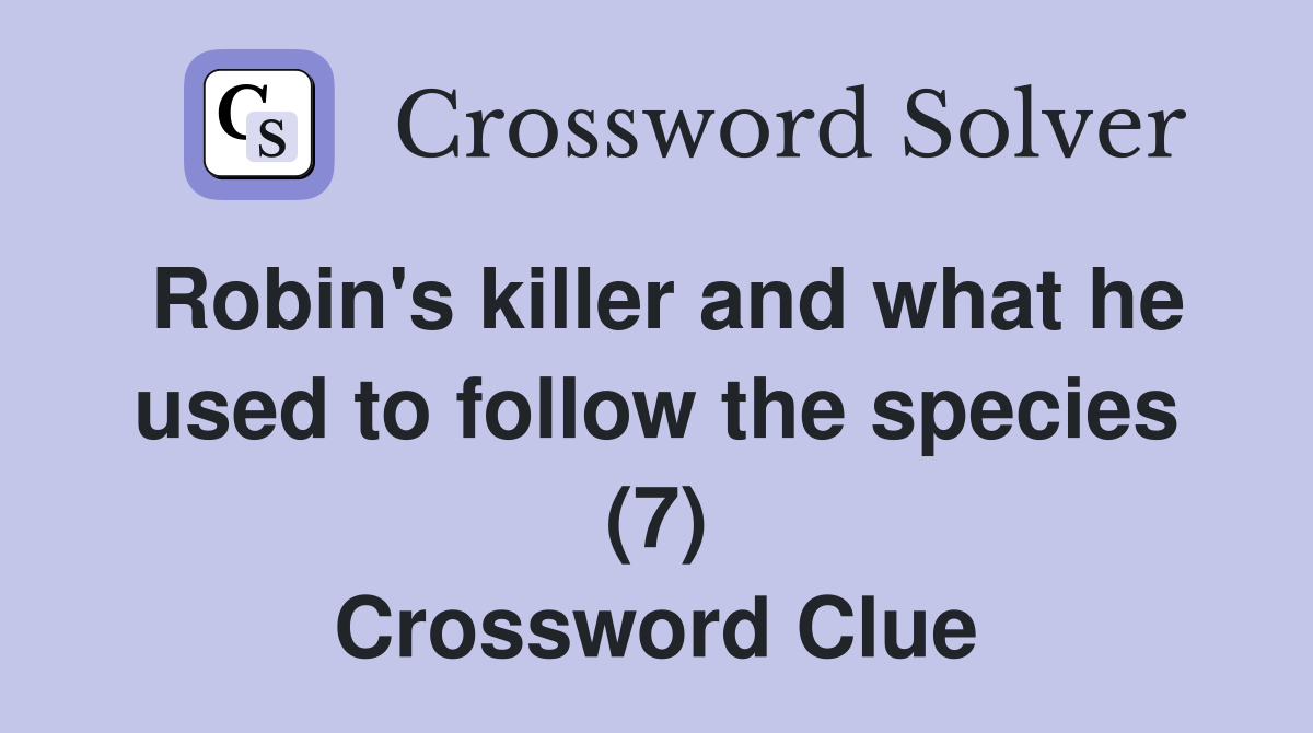 Robin #39 s killer and what he used to follow the species (7) Crossword