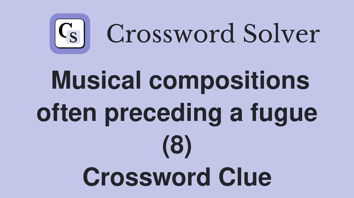 Musical compositions often preceding a fugue (8) Crossword Clue