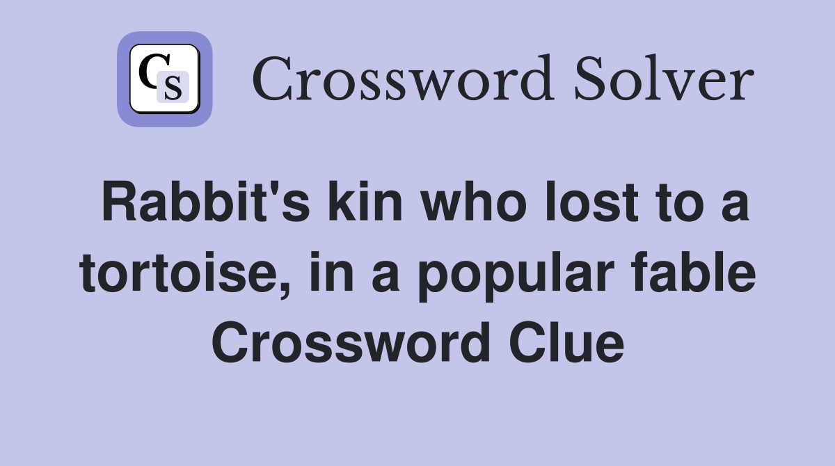 Rabbit #39 s kin who lost to a tortoise in a popular fable Crossword