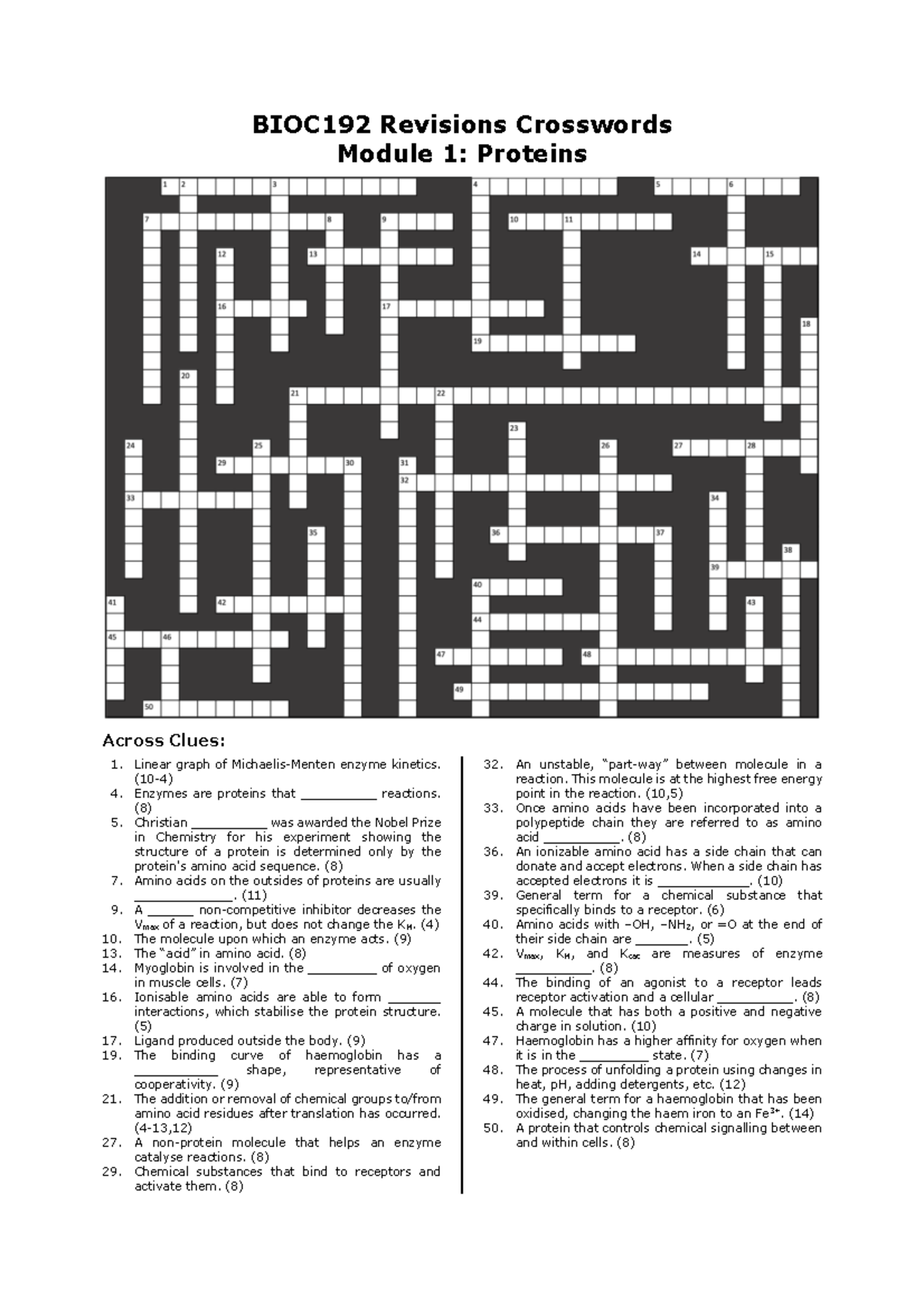 Module 3 Metabolism Crossword BIOC 192 Revisions Crosswords Module 1