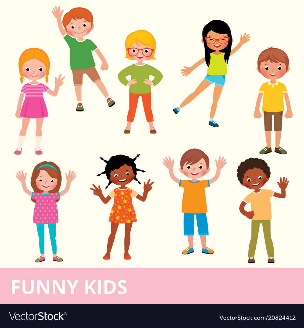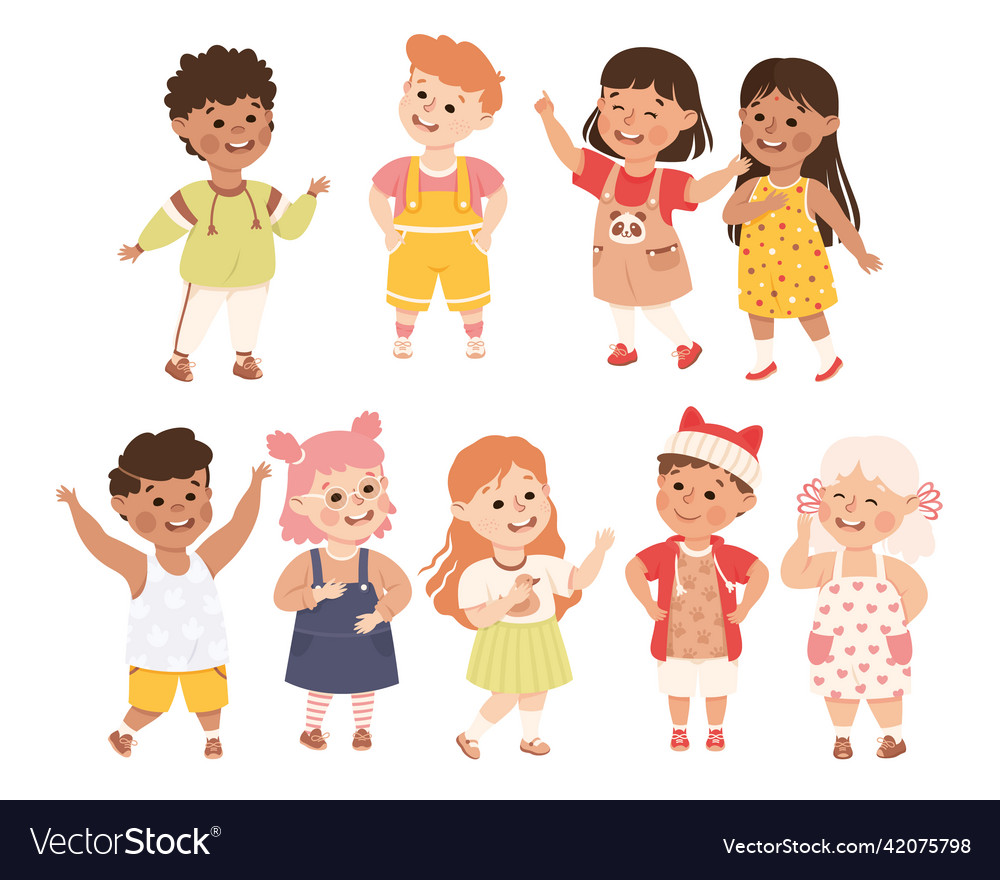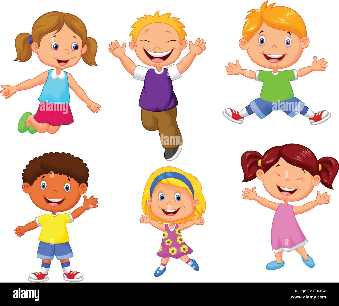 Vector Collection Happy Cartoon Children Different Stock Vector