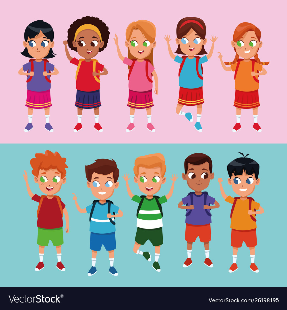 Group Happy Kids Characters Stock Vector (Royalty Free) 1075542077