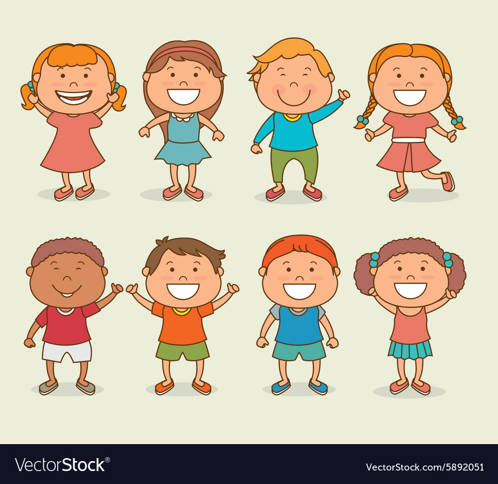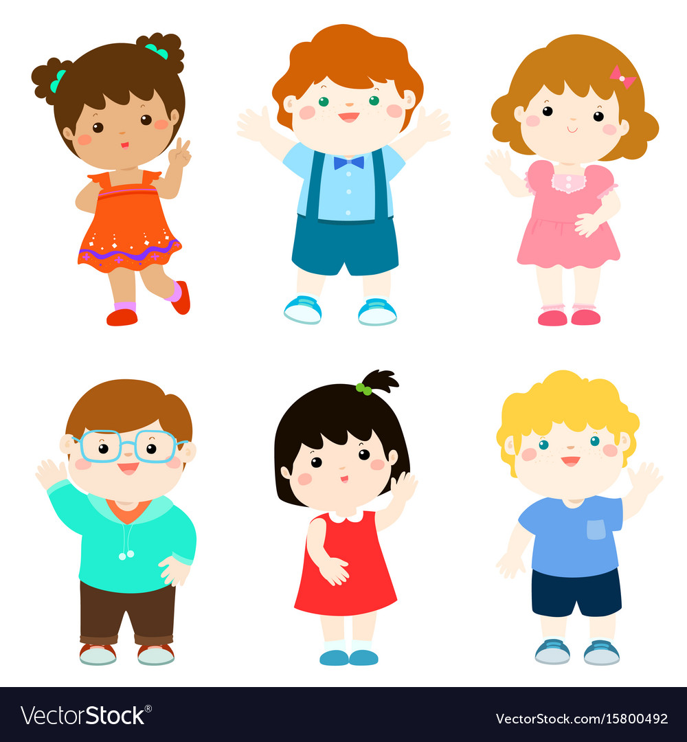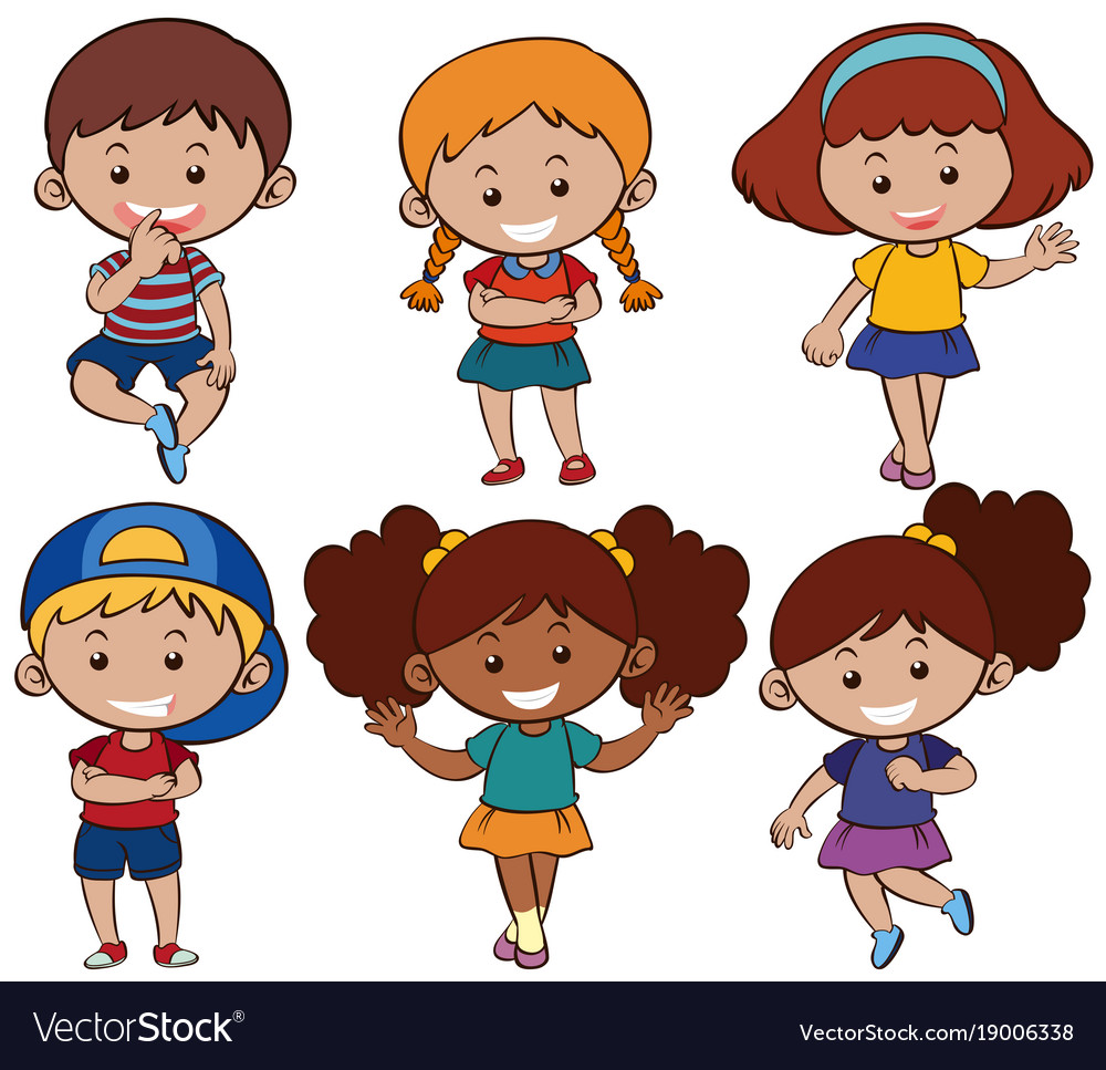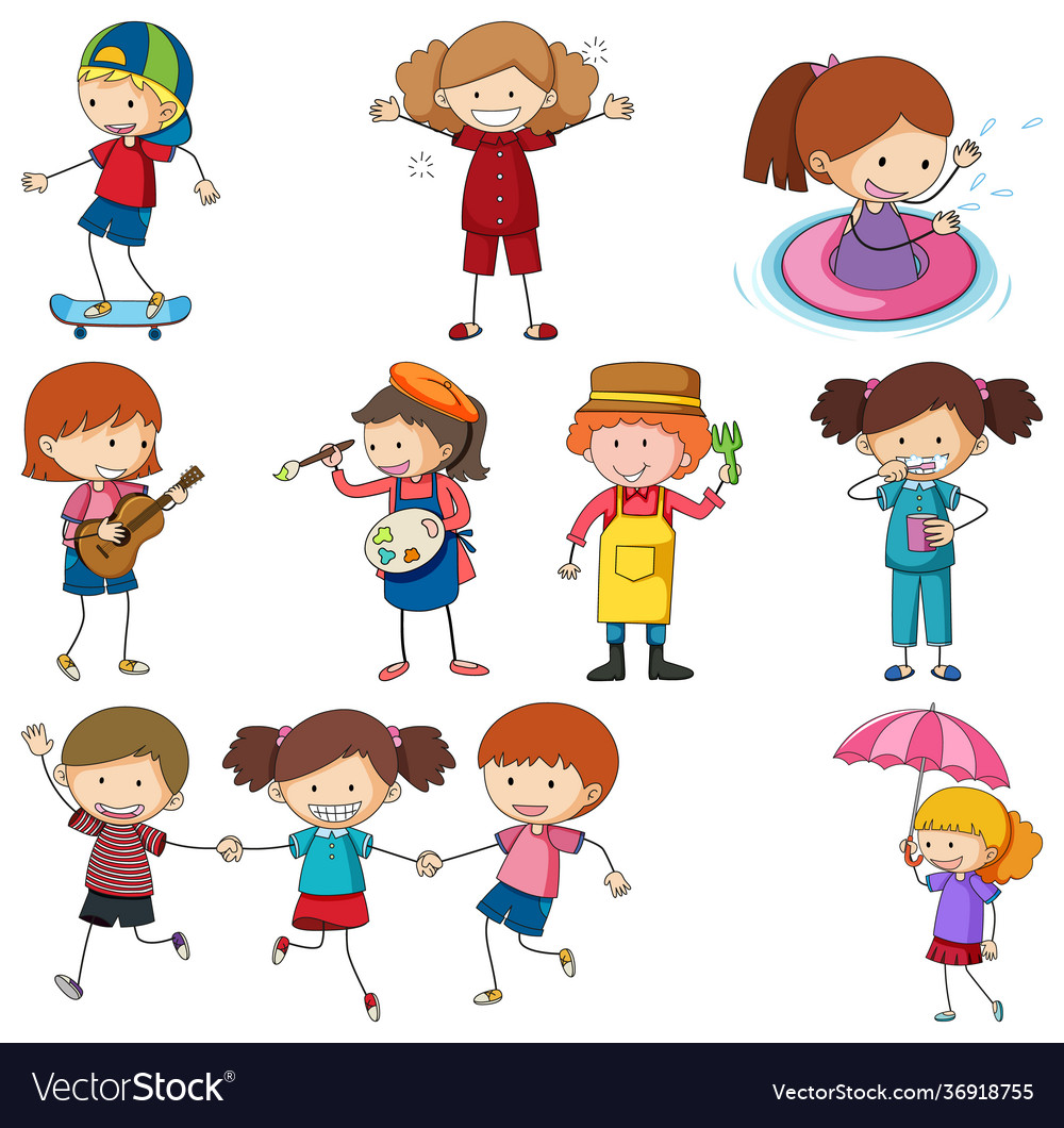Set of hand drawn cartoon characters happy kids Stock Vector Vector