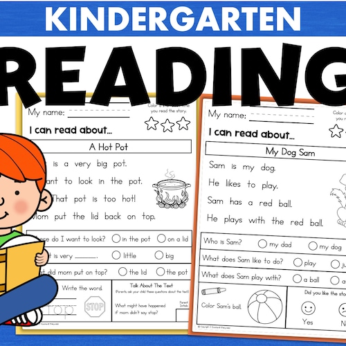 Kindergarten at Home Reading Worksheets Comprehension Etsy