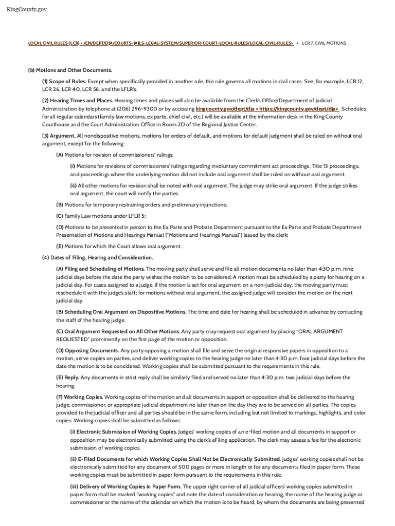 LCR 7 Civil Motions King County Washington PDF Judiciaries