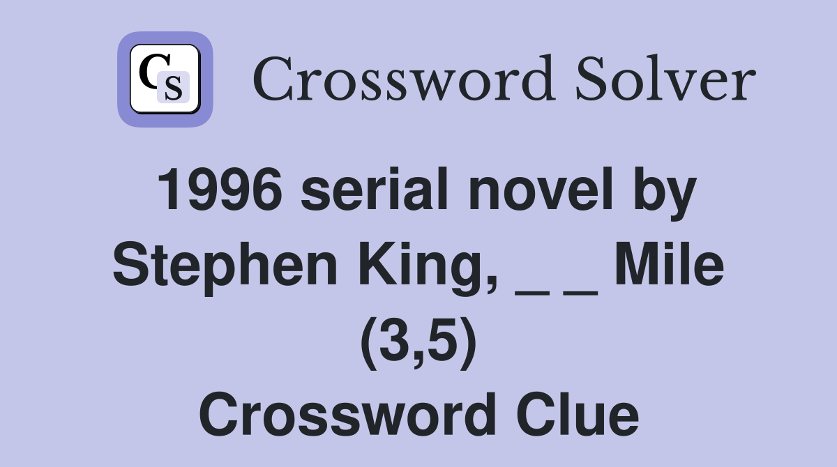1996 serial novel by Stephen King Mile (3 5) Crossword Clue