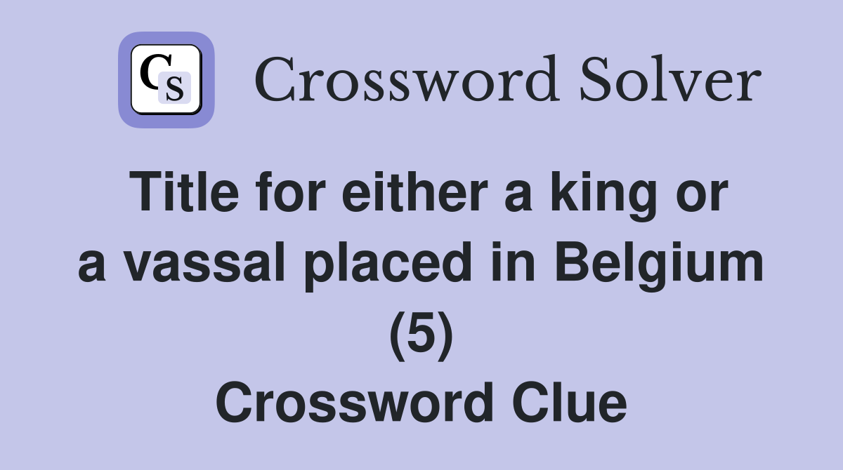 Title for either a king or a vassal placed in Belgium (5) Crossword
