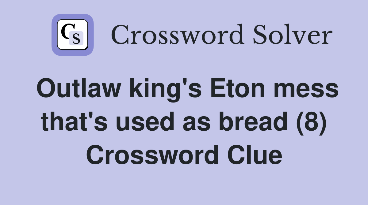 Outlaw king #39 s Eton mess that #39 s used as bread (8) Crossword Clue