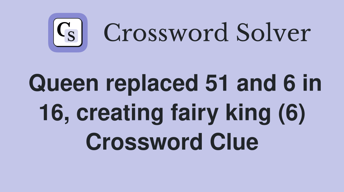 Queen replaced 51 and 6 in 16 creating fairy king (6) Crossword Clue