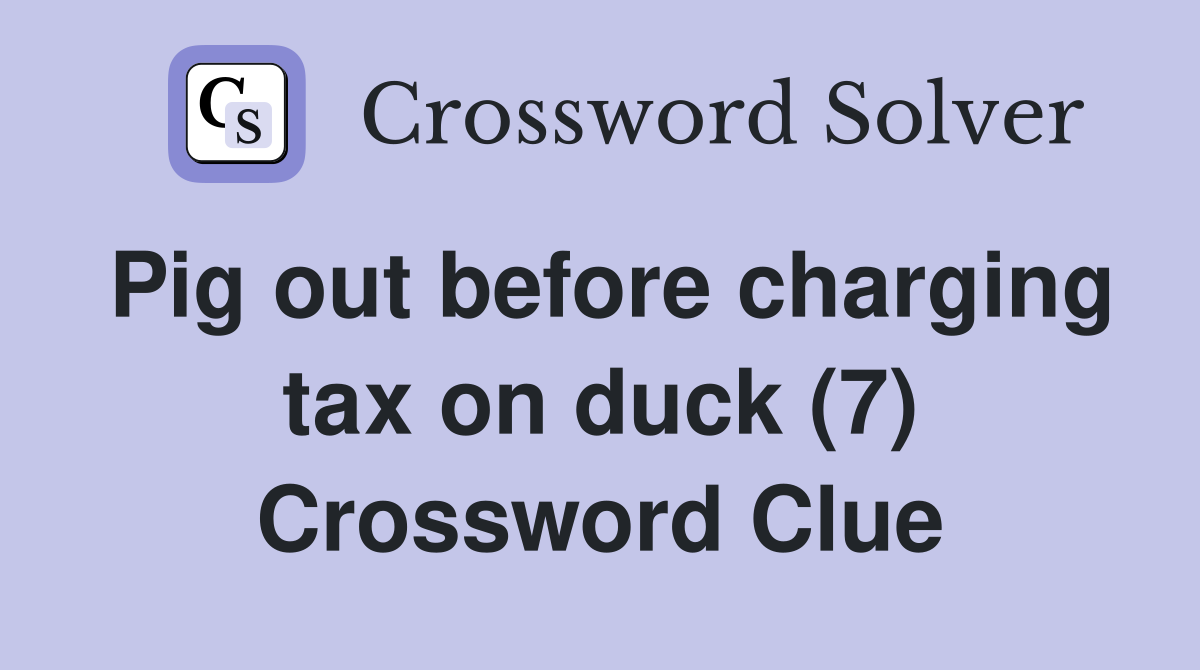 Pig out before charging tax on duck (7) Crossword Clue Answers