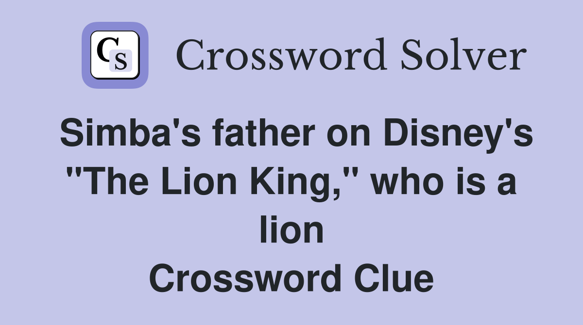 Simba #39 s father on Disney #39 s quot The Lion King quot who is a lion Crossword