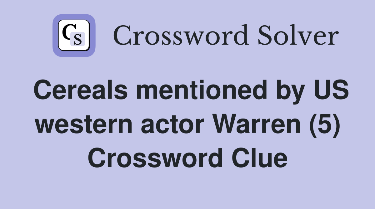 Cereals mentioned by US western actor Warren (5) Crossword Clue
