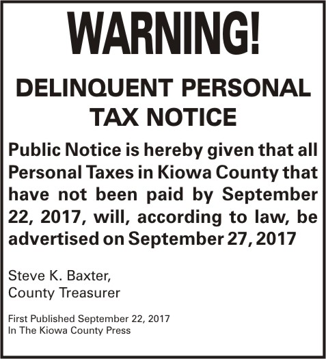 Delinquent Taxes Due Friday Kiowa County Press Eads Colorado