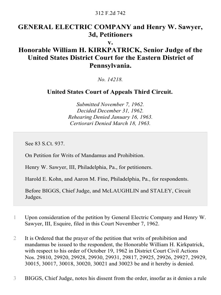 General Electric Company and Henry W Sawyer 3d v Honorable William H