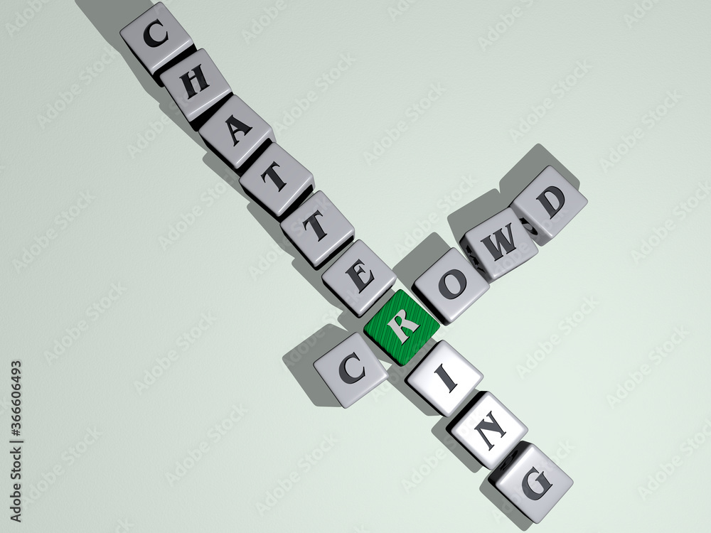 crosswords of crowd chattering arranged by cubic letters on a mirror