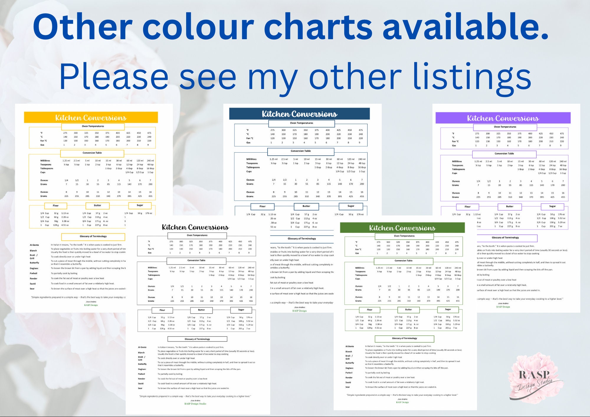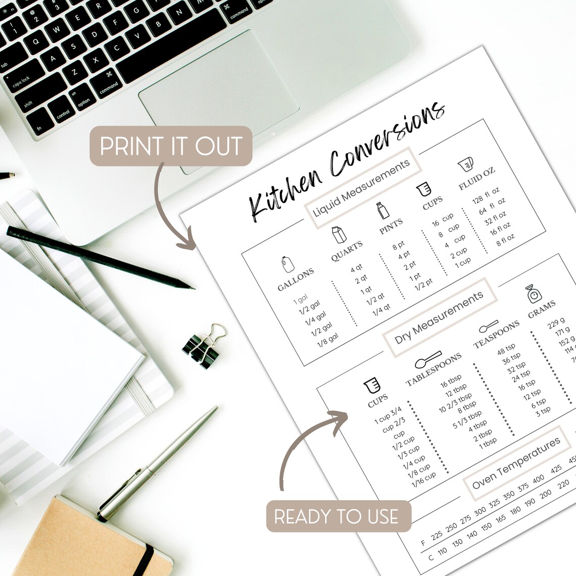 Kitchen Conversion Chart Printable 1 Page Guide / Kitchen